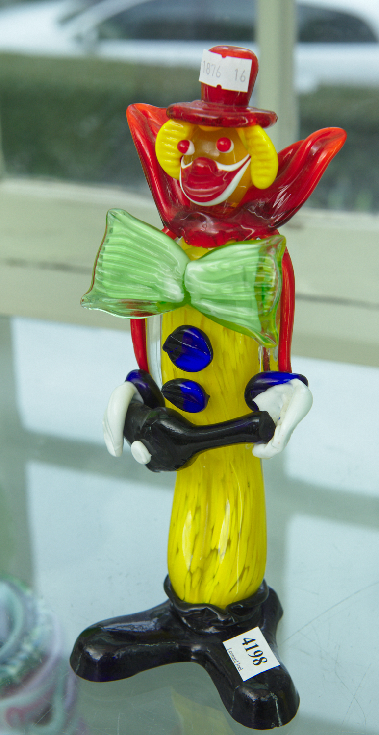 A 1950S ITALIAN GLASS CLOWN FIGURE H.28CM
