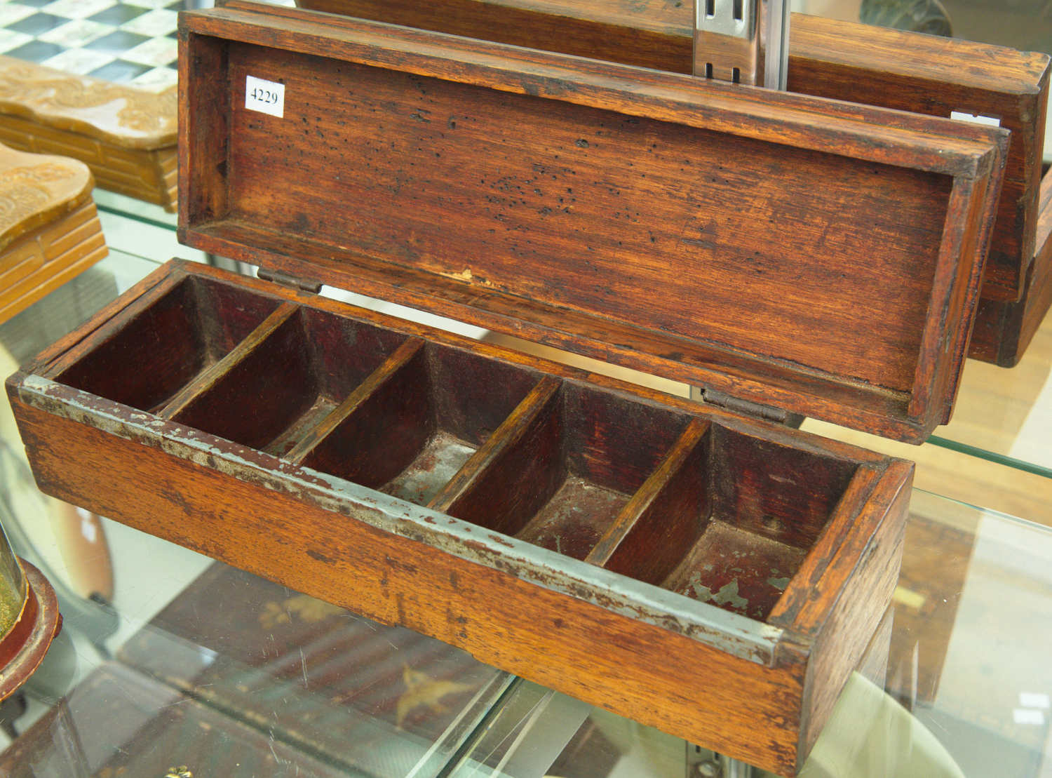 A BESPOKE 1920S FIVE DRAWER WOODEN AND TIN MONEY TILL