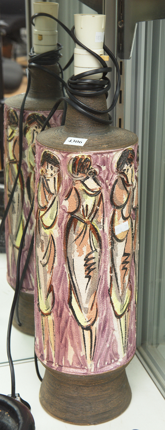 A SIGNED 1950S SCRAFFINO HAND PAINTED GLAZED TERRACOTTA LAMP
