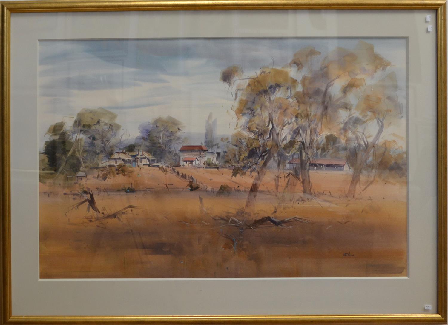 JOHN BORRACK, EARLY MORNING AT MERNDA, WATERCOLOUR, 130 X 180CM, FRAME SIZE: 129 X 180CM, CONDITION: VERY GOOD, THIS ITEM MUST BE REMOVED BY A PROFESSIONAL CARRIER