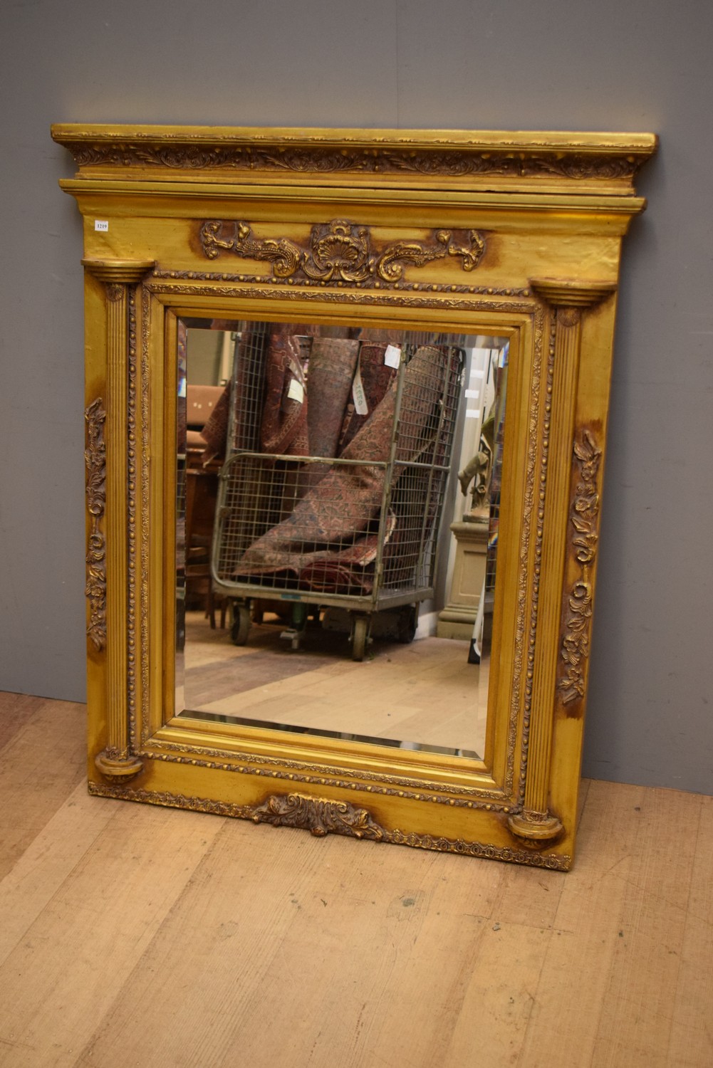 A DECORATIVE GILT MANTLE MIRROR (A/F) (126H X 103W CM)
