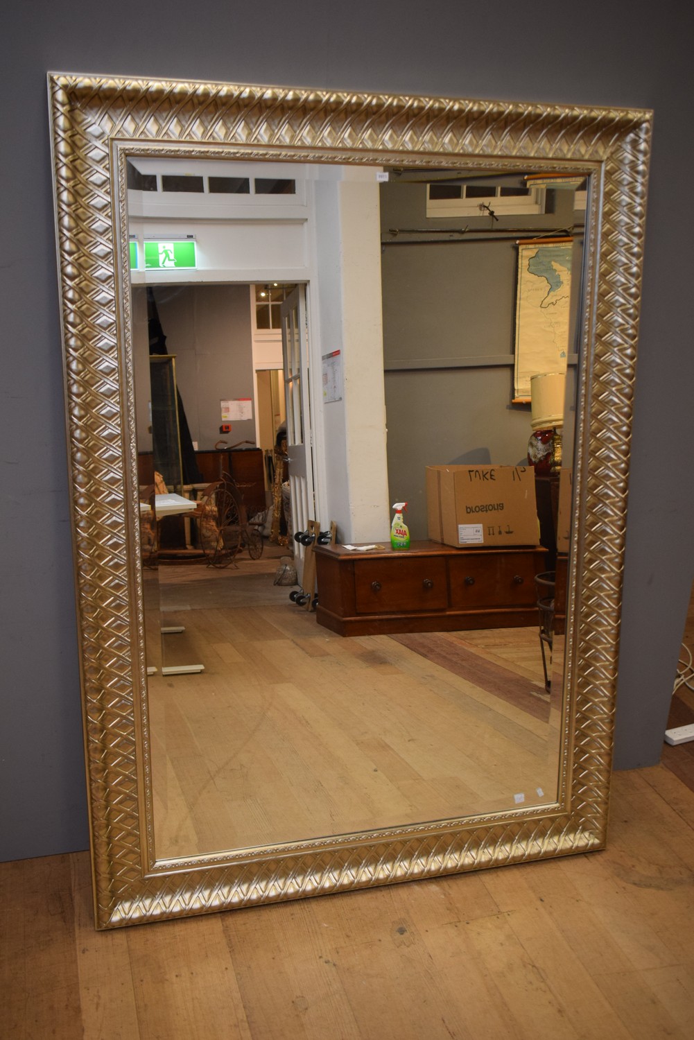 A LARGE DECORATIVE MIRROR WITH GOLD FINISH (180H X 130W CM)
