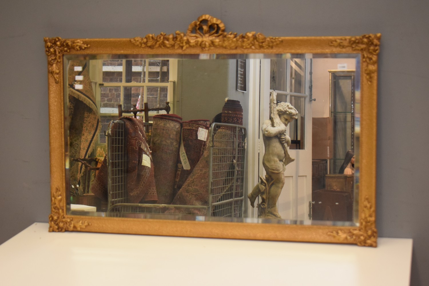 A DECORATIVE GILT WALL MIRROR (67H X 102W CM)