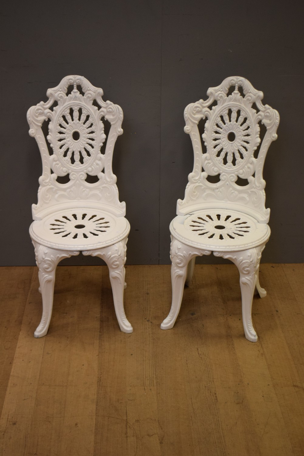 A PAIR OF METAL OUTDOOR CHAIRS (93H X 43W X 48D CM) (A/F)