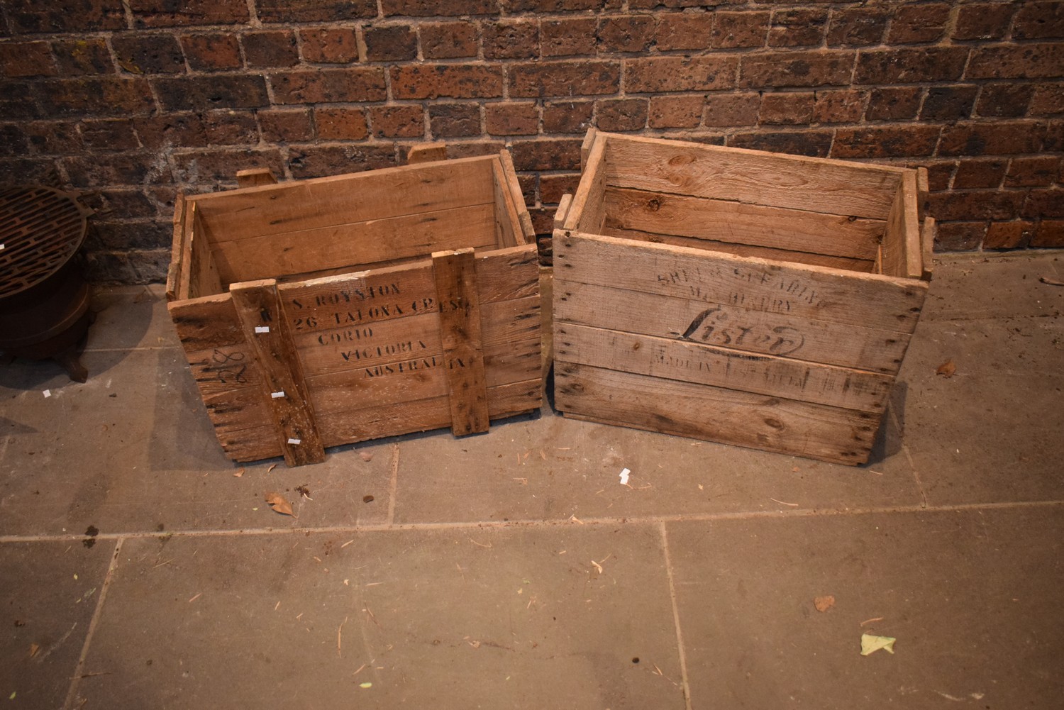TWO VINTAGE CRATES (49H X 61W X 33D CM)