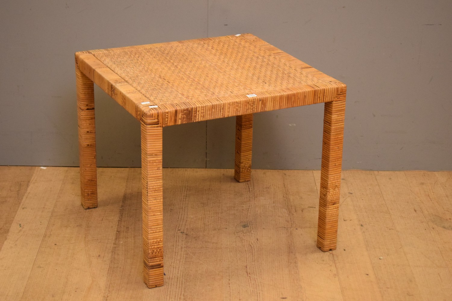 A 1970S RATTAN SIDE TABLE (51H X 60W X 59D CM)