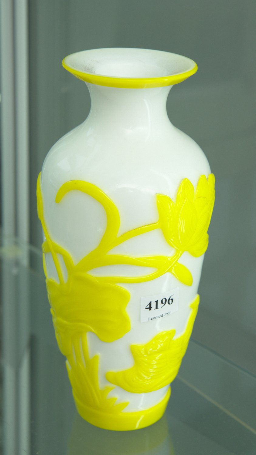 A CHINESE PEKING WHITE AND YELLOW GLASS VASE H.23CM