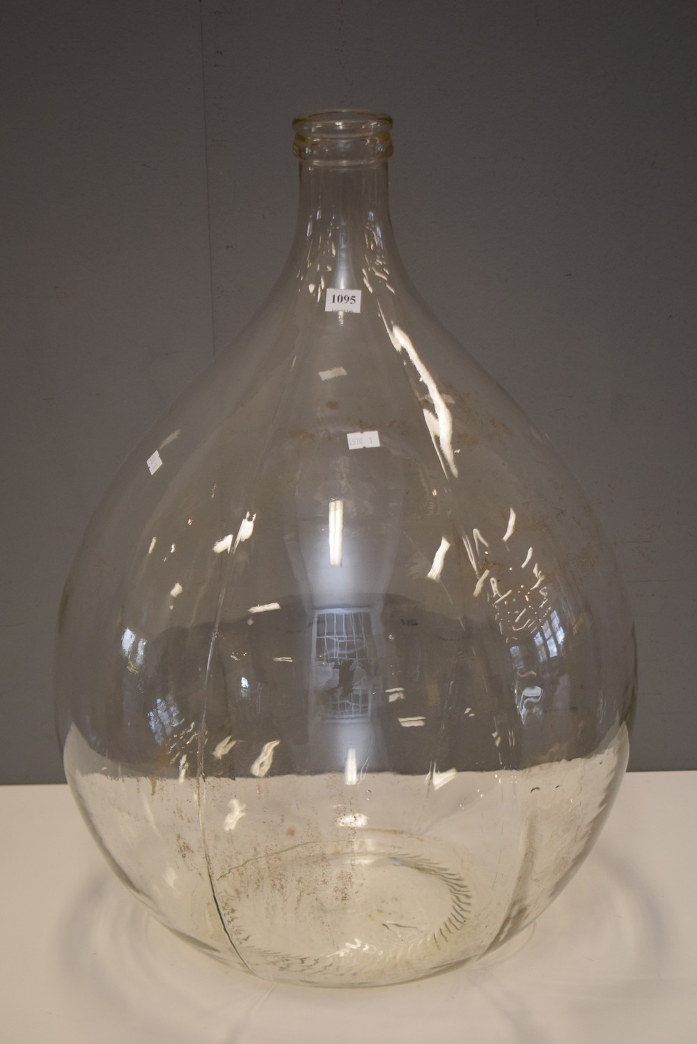 A LARGE CLEAR GLASS DEMIJOHN (66H X 46D CM)