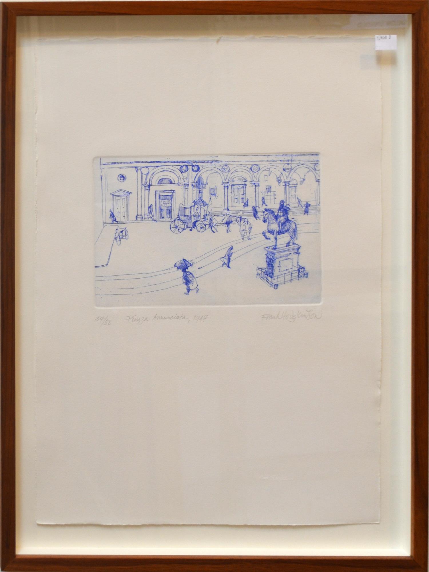 FRANK HODGKINSON, PIAZZA ANNUNCIATA 1947, ETCHING 34/50, 16 X 24CM, FRAME SIZE: 61.5 X 46CM, CONDITION: VERY GOOD
