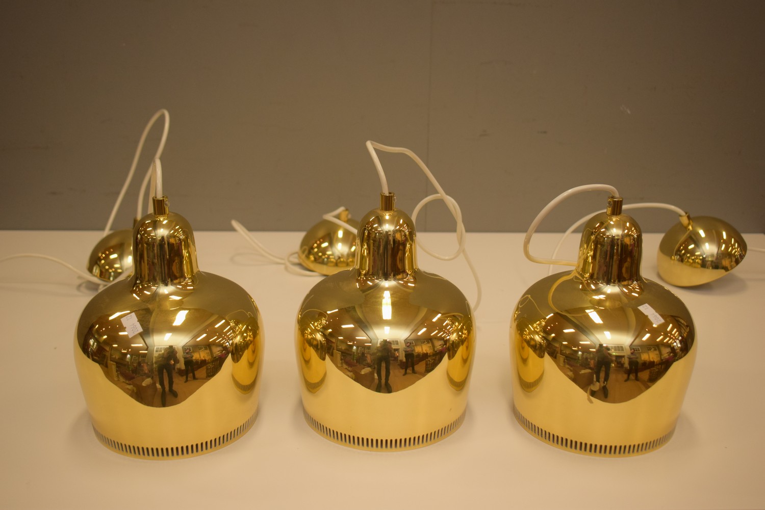 A SET OF THREE A330S PENDANTS IN BRASS BY ARTEK, FINLAND (PENDANT HEIGHT 22 CM H)