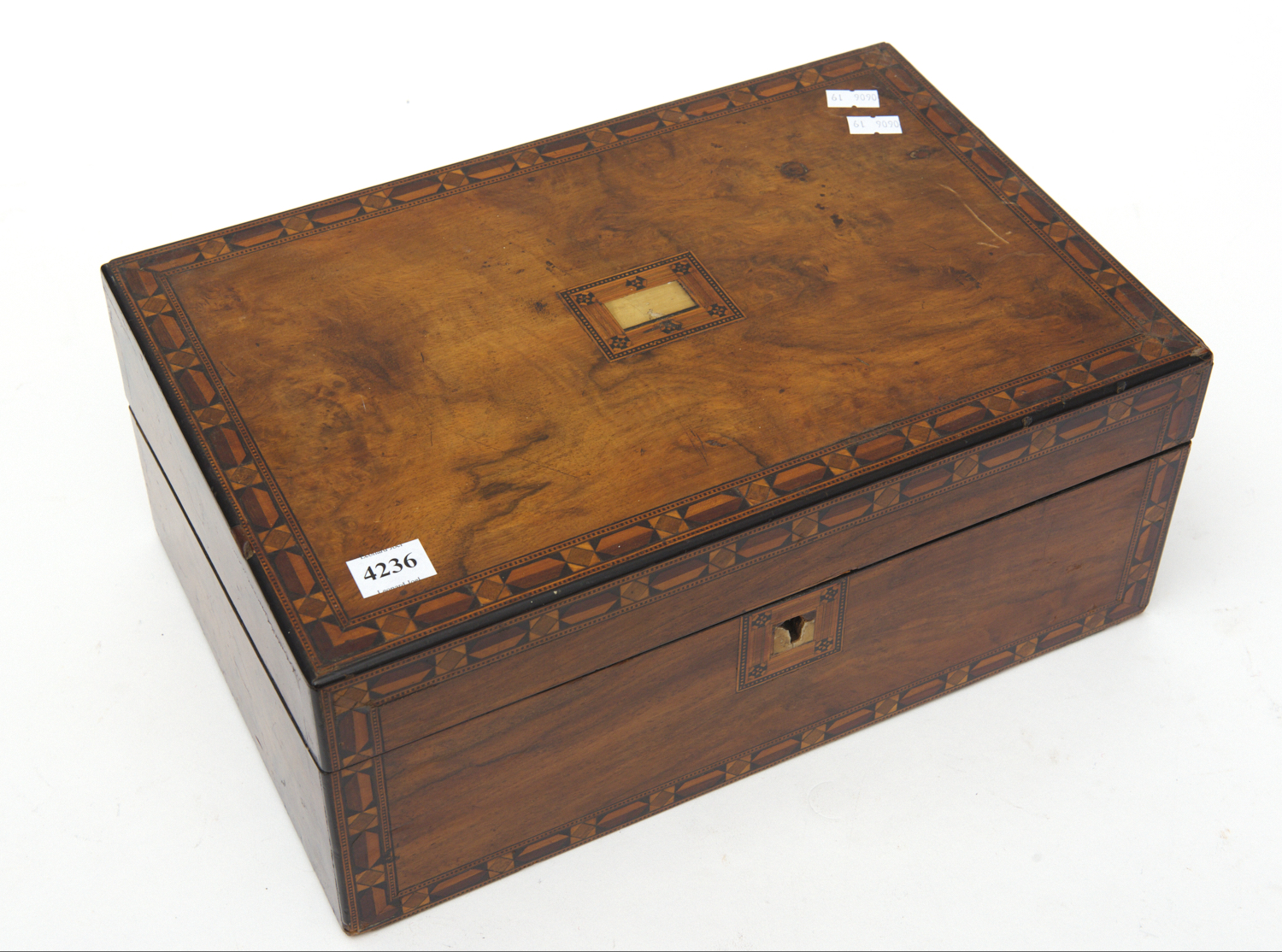 A 19TH CENTURY WALNUT INLAID WRITING SLOPE