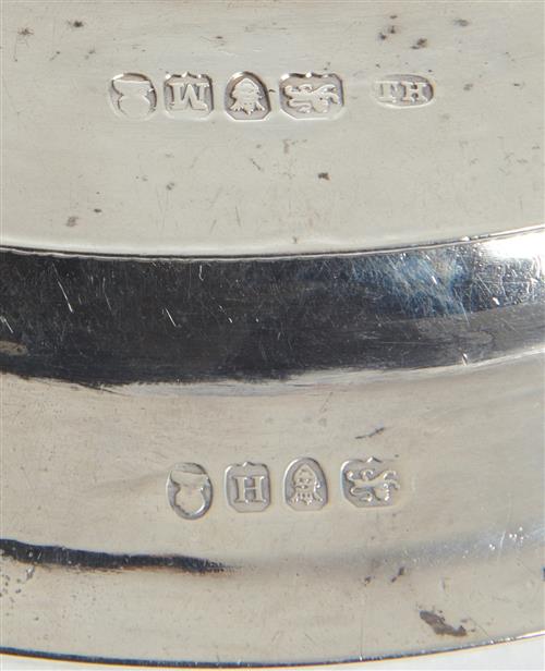 Each dish with a shallow basin, and a reeded rim. Two plates hallmarked by Thomas Hayter, circa 1807, and the other two by George Smith & Thomas Hayter, circa 1803.
