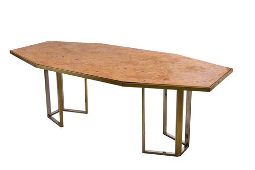 A FRENCH ART DECO STYLE BURR WALNUT & CHROME DINING TABLE