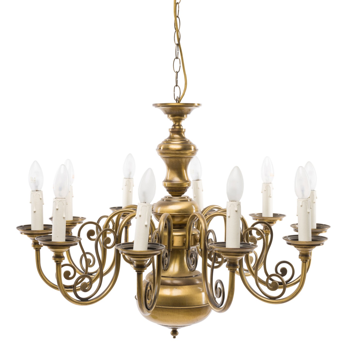 A FLEMISH INSPIRED BRASS CHANDELIER