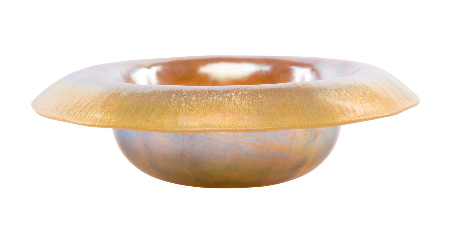 AN AMERICAN GOLD FAVRILE GLASS CENTRE BOWL