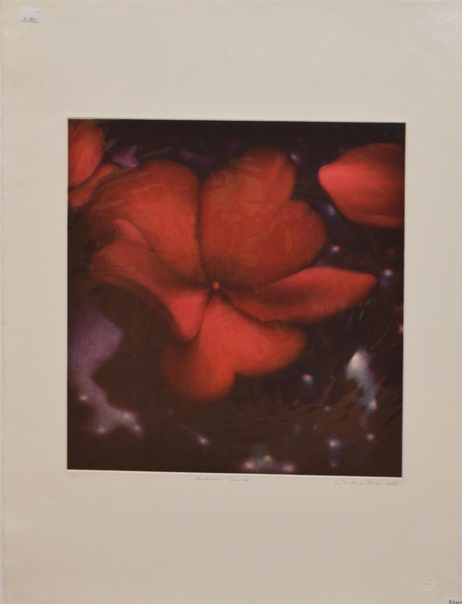 CHRISTINE JOHNSON, AUSTRALIAN SUNRISE 2005, ETCHING 1/5, 76 X 56CM (SHEET SIZE), CONDITION: VERY GOOD, UNFRAMED, HOWEVER BACKED AND WRAPPED IN PLASTIC FOR PROTECTION