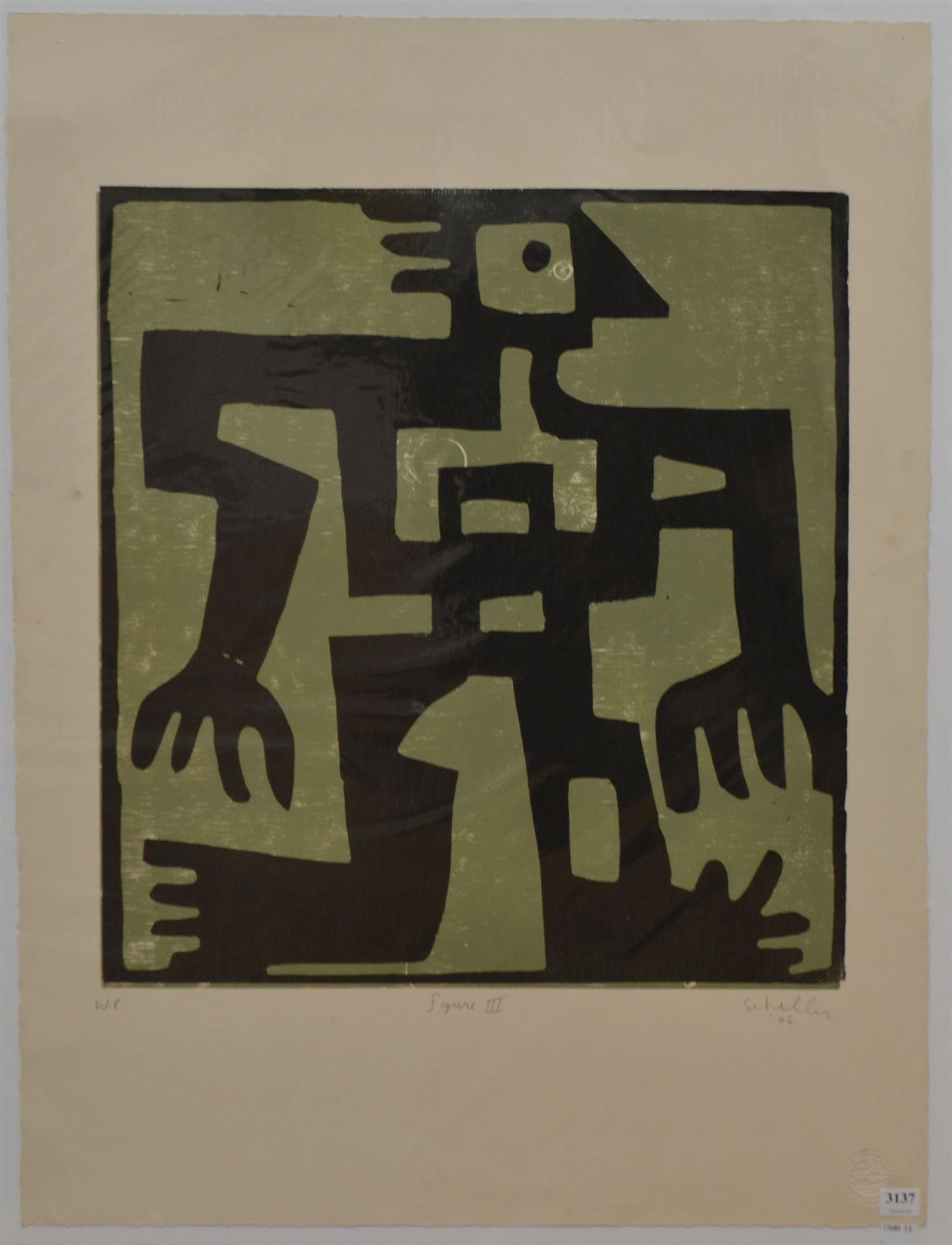 MARK SCHALLER, FIGURE III 2006, WOODCUT W/P, 76 X 56CM (SHEET SIZE), CONDITION: VERY GOOD, UNFRAMED, HOWEVER BACKED AND WRAPPED IN PLASTIC FOR PROTECTION