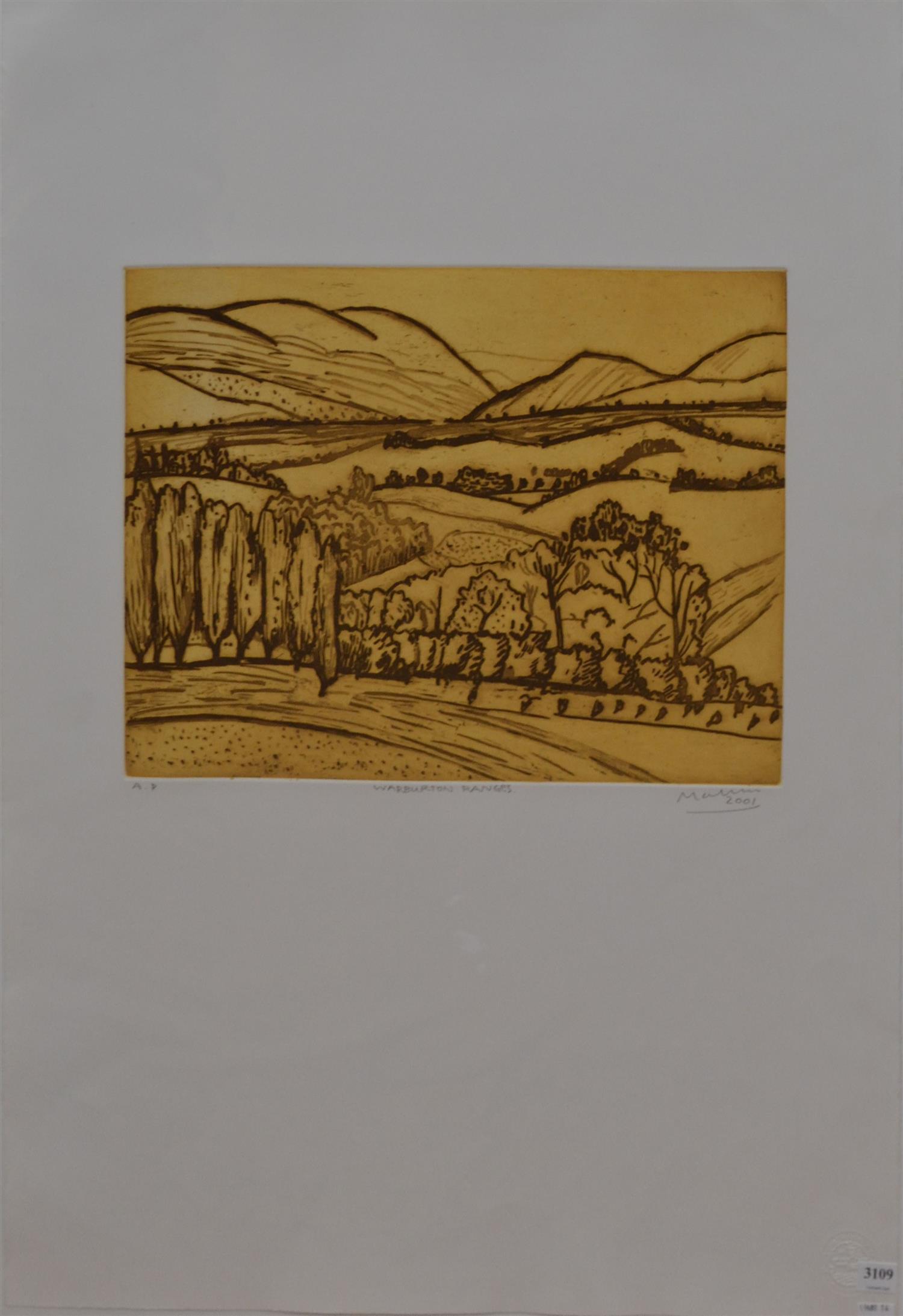 JEFF MAKIN, WARBURTON RANGES 2001, ETCHING A/P, 76 X 56CM (SHEET SIZE), CONDITION: VERY GOOD, UNFRAMED, HOWEVER BACKED AND WRAPPED IN PLASTIC FOR PROTECTION