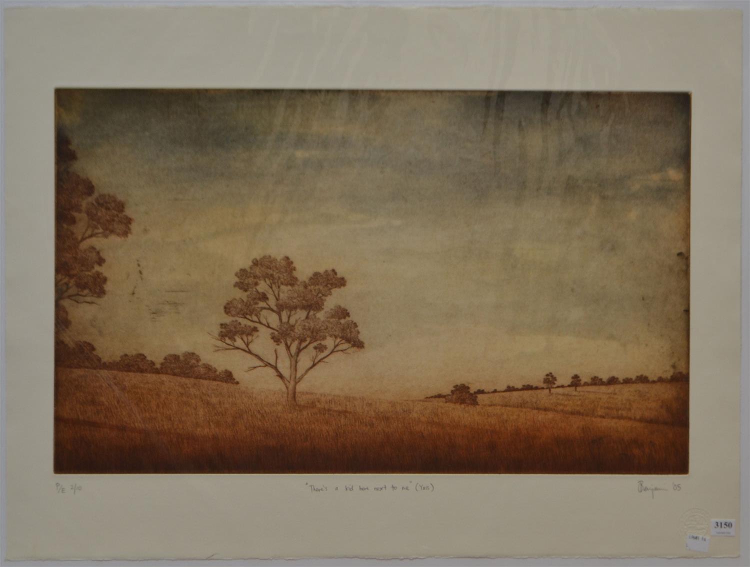 JASON BENJAMIN, THERE'S A KID NEXT TO ME (YASS), ETCHING P/E 2/10, 76 X 56CM (SHEET SIZE), CONDITION: VERY GOOD, UNFRAMED, HOWEVER BACKED AND WRAPPED IN PLASTIC FOR PROTECTION