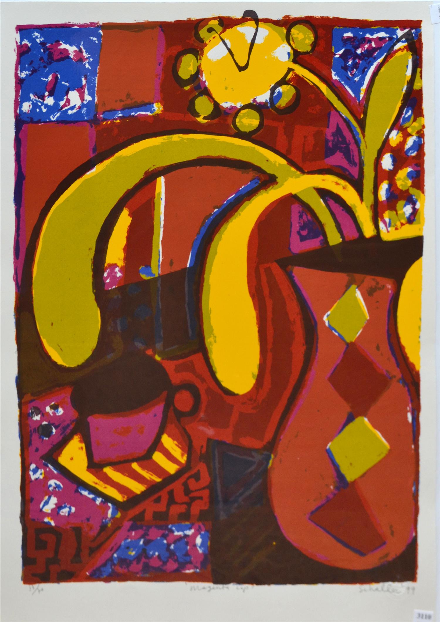 MARK SCHALLER, MAGENTA CUP 1999, SCREENPRINT 33/70, 76 X 56CM (SHEET SIZE), CONDITION: VERY GOOD, UNFRAMED, HOWEVER BACKED AND WRAPPED IN PLASTIC FOR PROTECTION