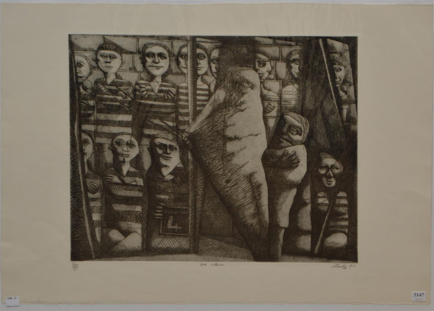 KEITH LOOBY, 4TH CLASS 1977, ETCHING 12/35, 76 X 56CM (SHEET SIZE), CONDITION: VERY GOOD, UNFRAMED, HOWEVER BACKED AND WRAPPED IN PLASTIC FOR PROTECTION