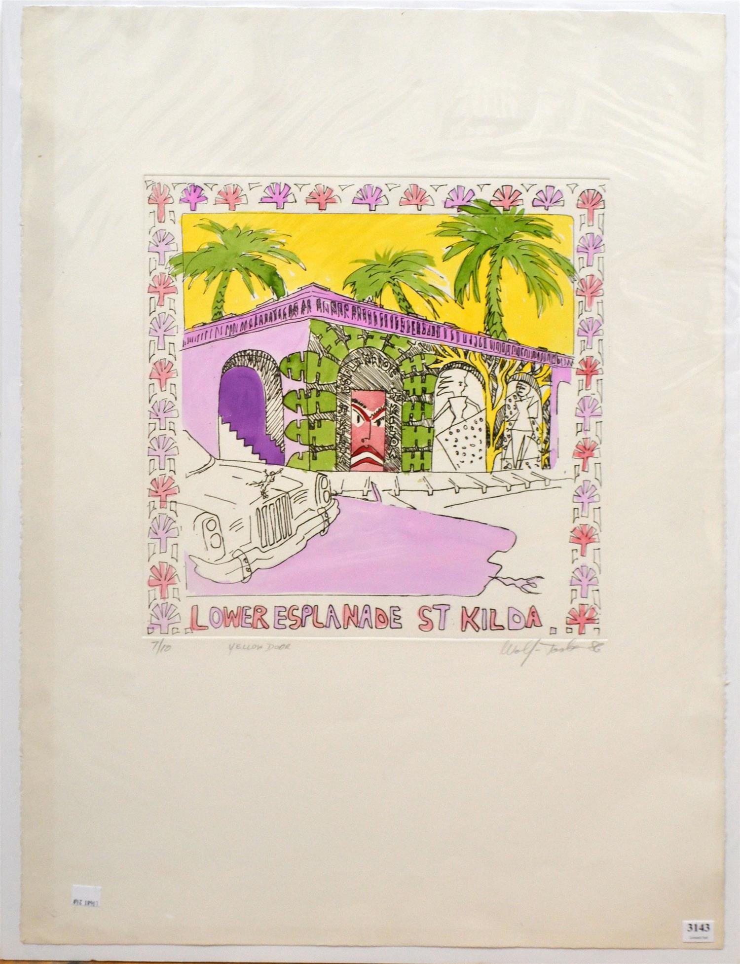 ALAN WOLF-TASKER, YELLOW DOOR 1986, ETCHING 7/10, 76 X 56CM (SHEET SIZE), CONDITION: VERY GOOD, UNFRAMED, HOWEVER BACKED AND WRAPPED IN PLASTIC FOR PROTECTION