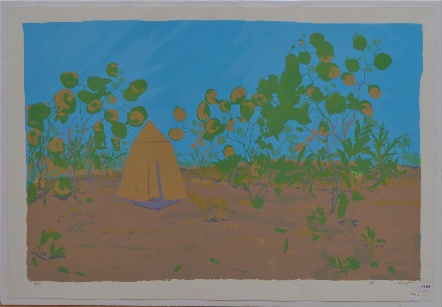 CLIFTON PUGH, PRESENCE OF THE DINGO, SCREENPRINT 36/75, 76 X 56CM (SHEET SIZE), CONDITION: VERY GOOD, UNFRAMED, HOWEVER BACKED AND WRAPPED IN PLASTIC FOR PROTECTION