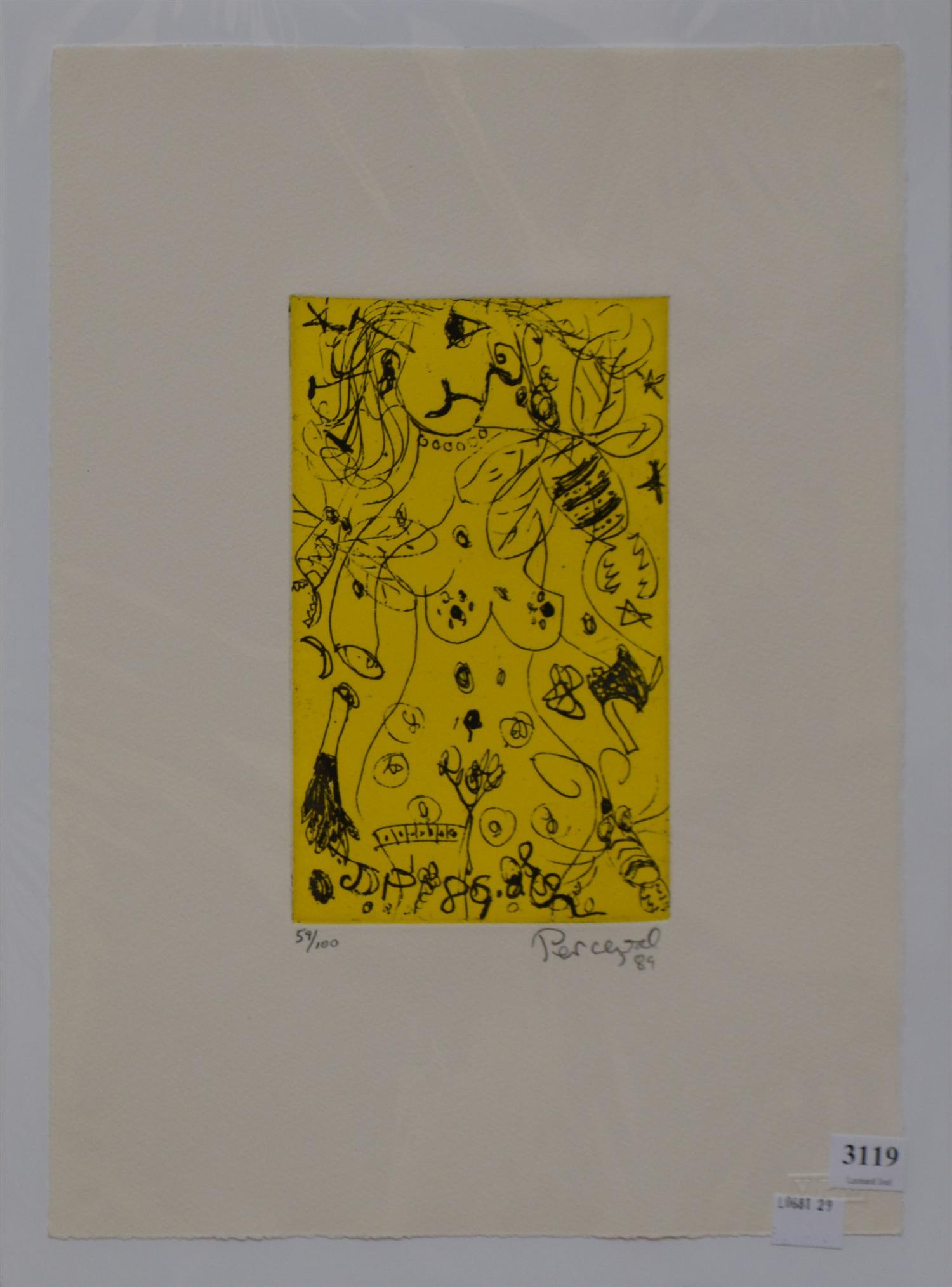 JOHN PERCEVAL, NUDE AND BEE 1989, ETCHING 59/100, 38 X 28CM (SHEET SIZE), CONDITION: VERY GOOD, UNFRAMED, HOWEVER BACKED AND WRAPPED IN PLASTIC FOR PROTECTION