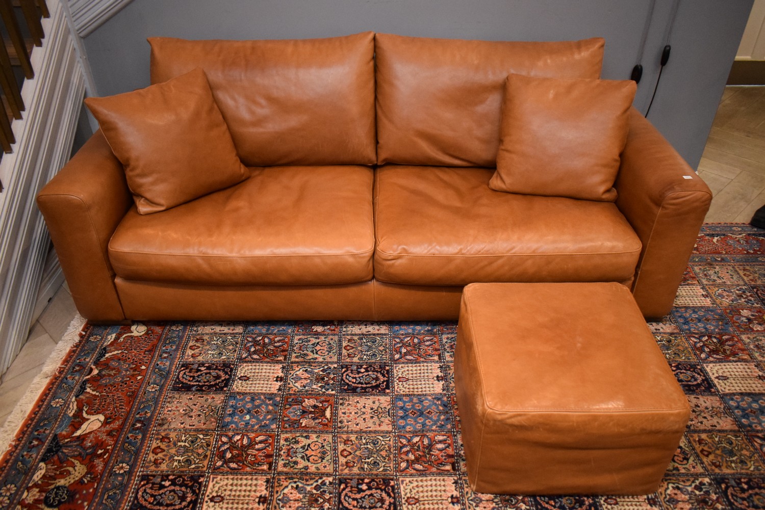 AN ITALIAN LEATHER SOFA WITH MATCHING OTTOMAN (SOFA 85H X 220W X 97D CM)