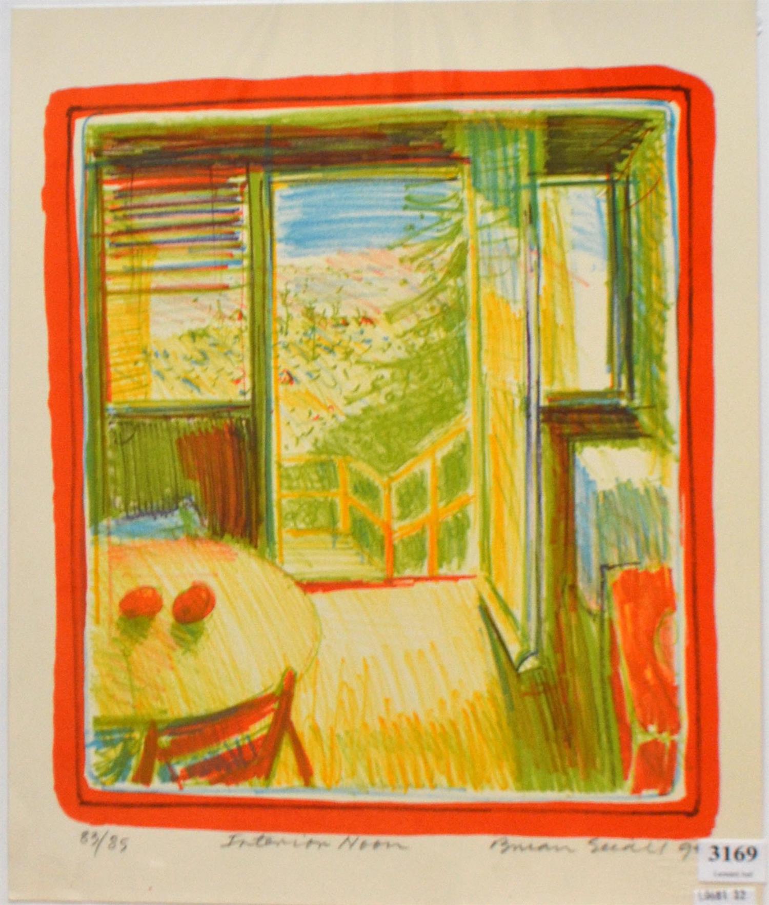 BRAIN SEIDEL, INTERIOR NOON 1994, LITHOGRAPH 83/85, 38 X 28CM (SHEET SIZE), CONDITION: VERY GOOD, UNFRAMED, HOWEVER BACKED AND WRAPPED IN PLASTIC FOR PROTECTION