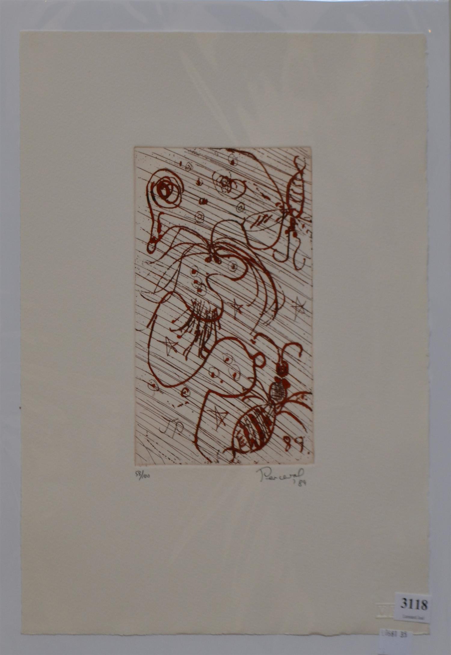 JOHN PERCEVAL, NUDE AND RAIN 1989, ETCHING 58/100, 38 X 28CM (SHEET SIZE), CONDITION: VERY GOOD, UNFRAMED, HOWEVER BACKED AND WRAPPED IN PLASTIC FOR PROTECTION, LEONARD JOEL DELIVERY SIZE: SMALL