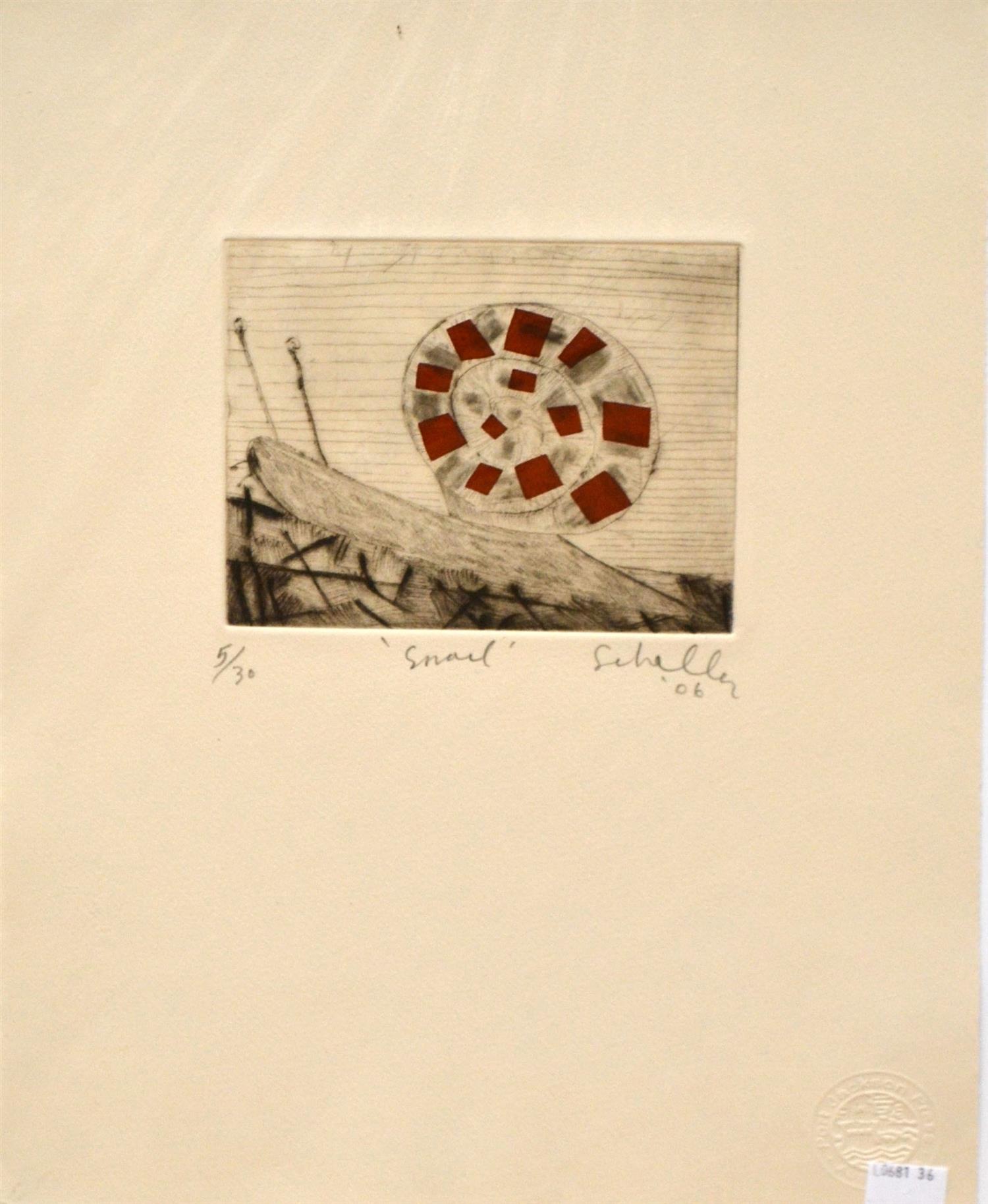 MARK SCHALLER, SNAIL 2006, ETCHING 5/30, 38 X 28CM (SHEET SIZE), CONDITION: VERY GOOD, UNFRAMED, HOWEVER BACKED AND WRAPPED IN PLASTIC FOR PROTECTION