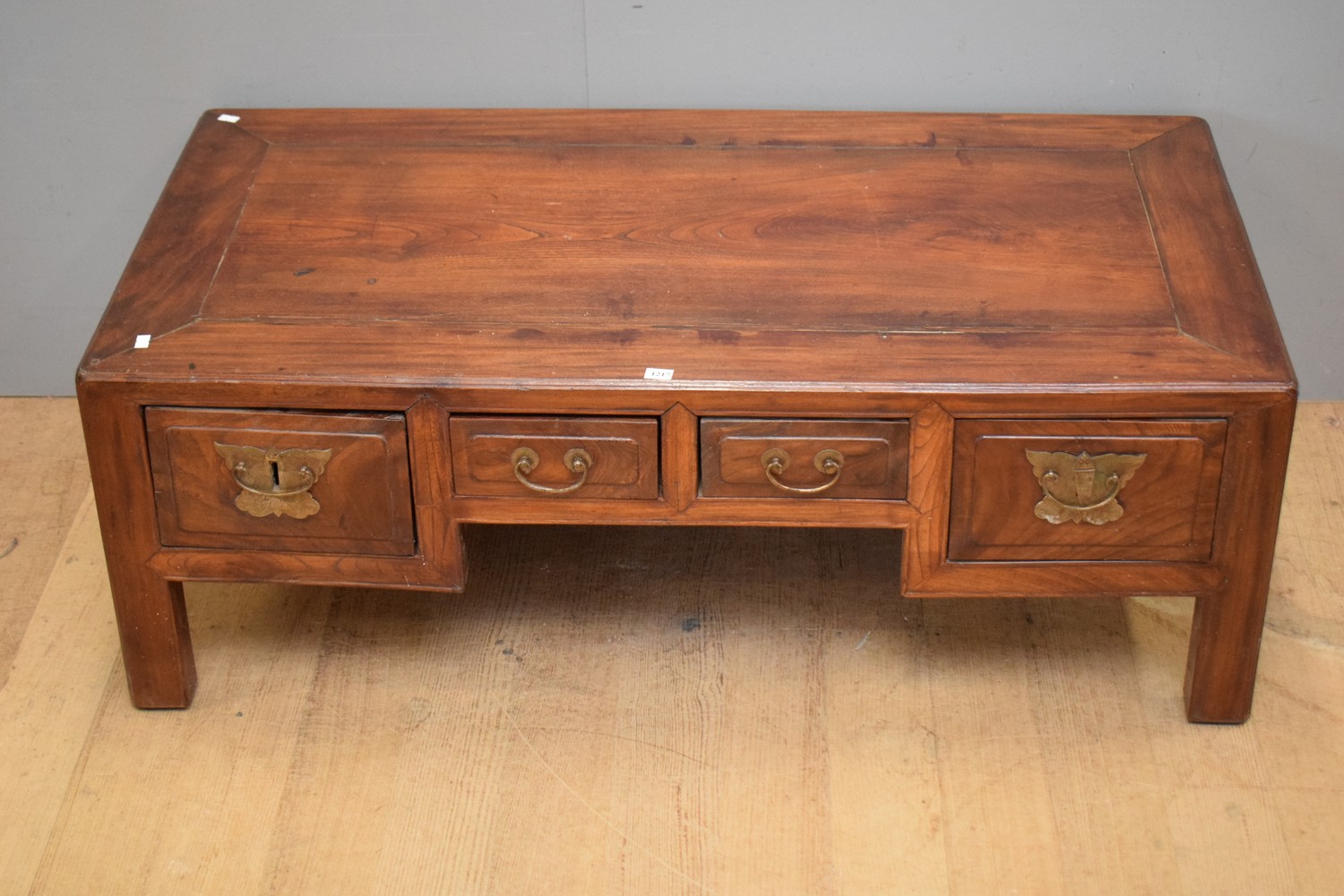 A CHINESE TEAK COFFEE TABLE (41H X 112W X 58D CM)