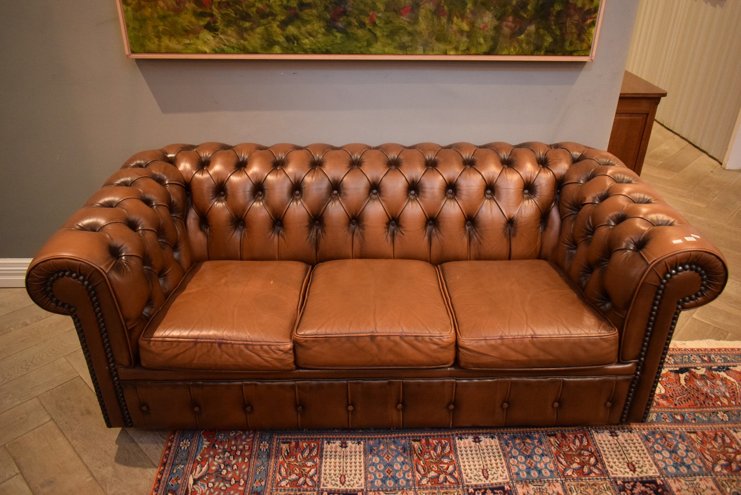 A LEATHER CHESTERFIELD MORAN SOFA (69H X 193W X 92D CM)