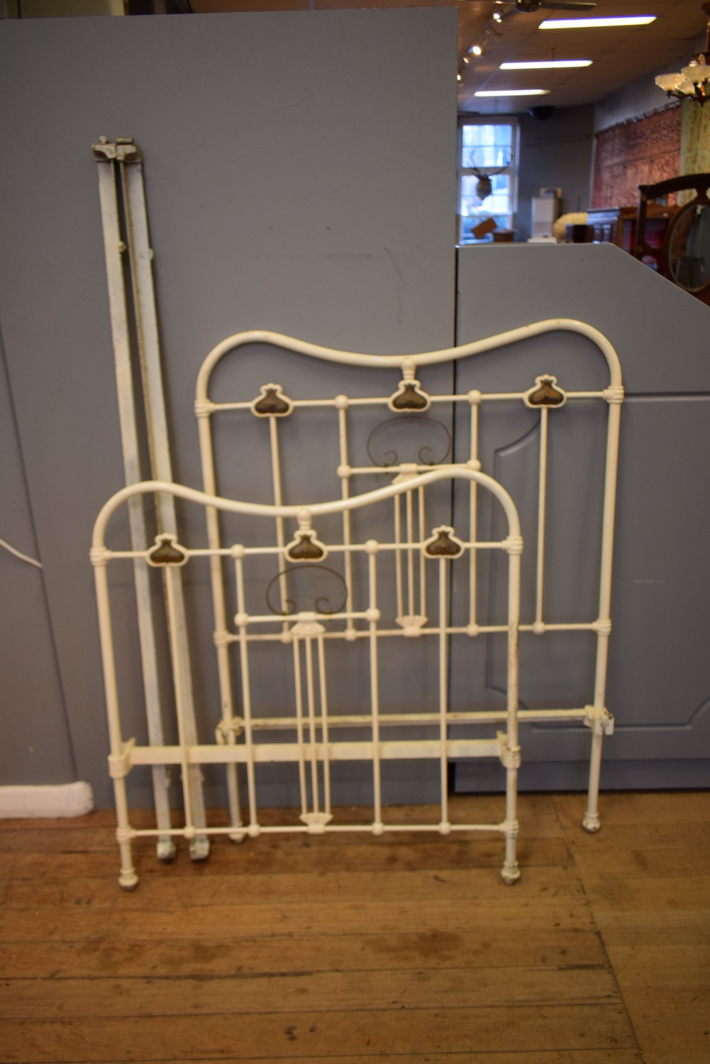 AN ART NOUVEAU SINGLE CAST IRON BED (HEAD 144H X 106W CM)
