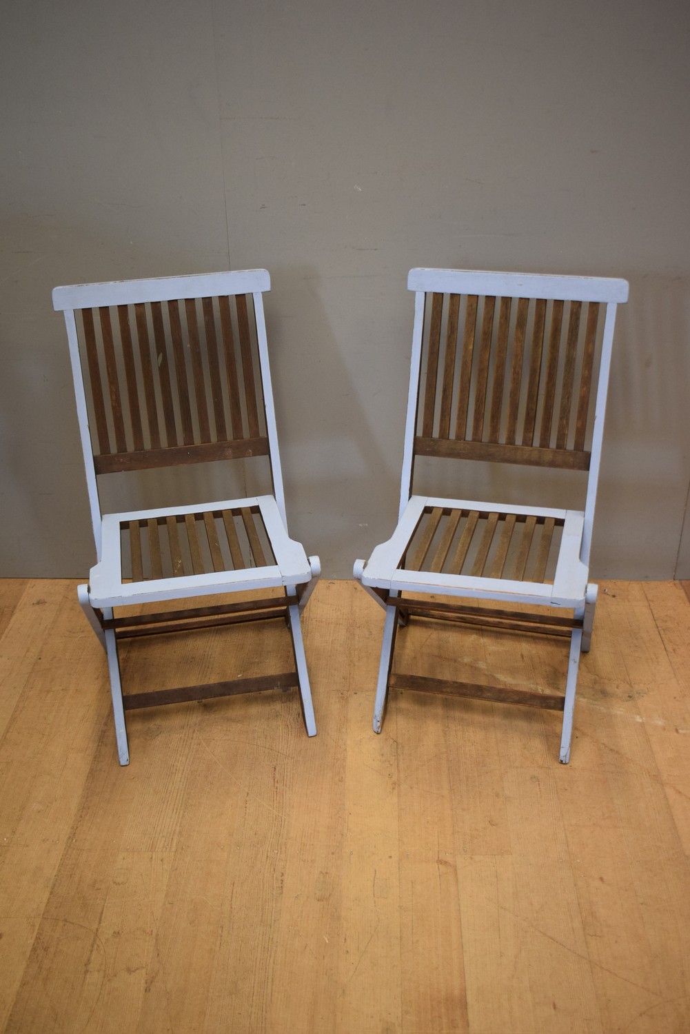 A PAIR OF TEAK OUTDOOR CHAIRS (88H X 47W X 54D CM)
