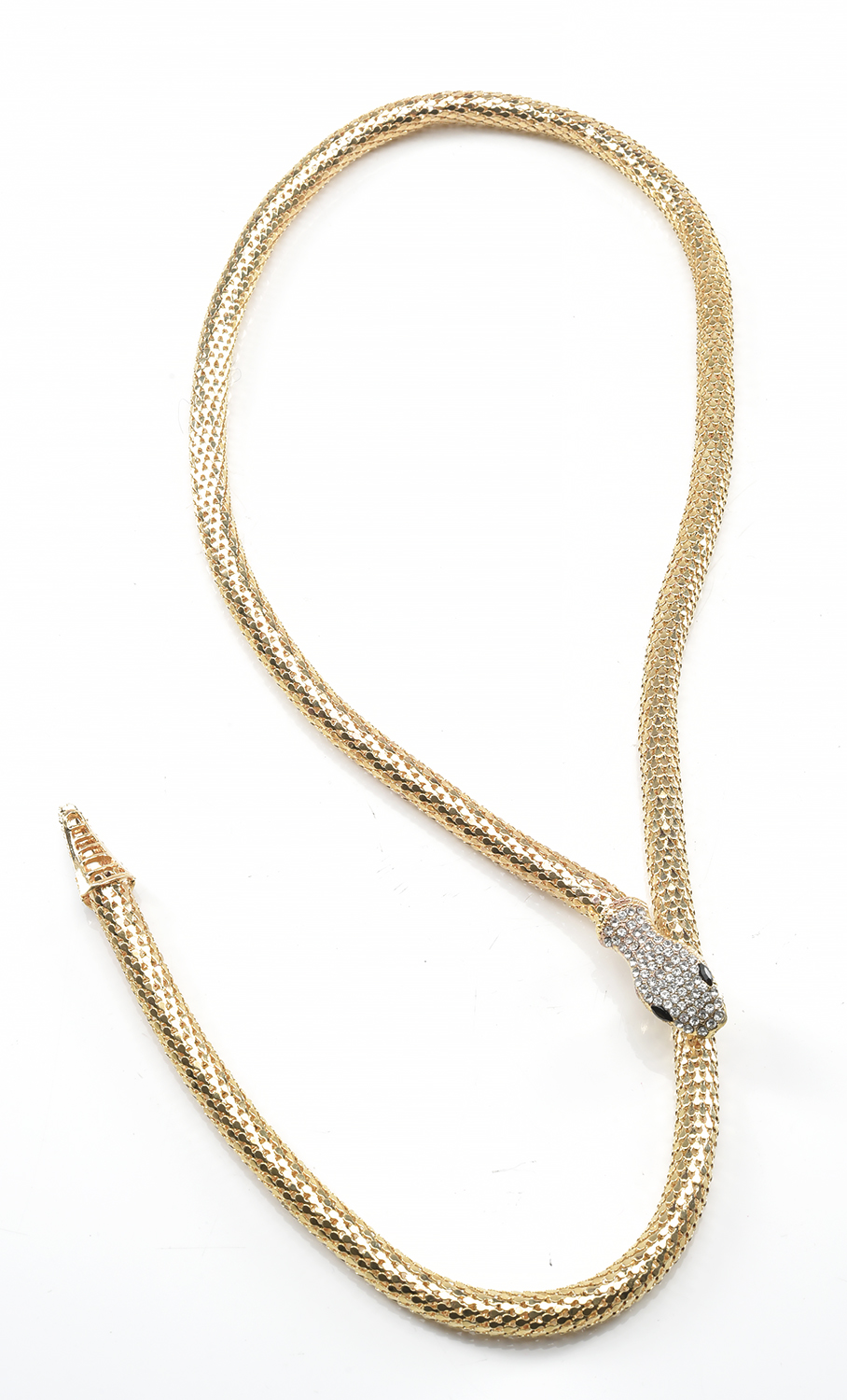 A RETRO SNAKE LARIAT NECKLACE, THE HEAD SET WITH PASTE, ADJUSTABLE LENGTH WITH MAGNET CLASP