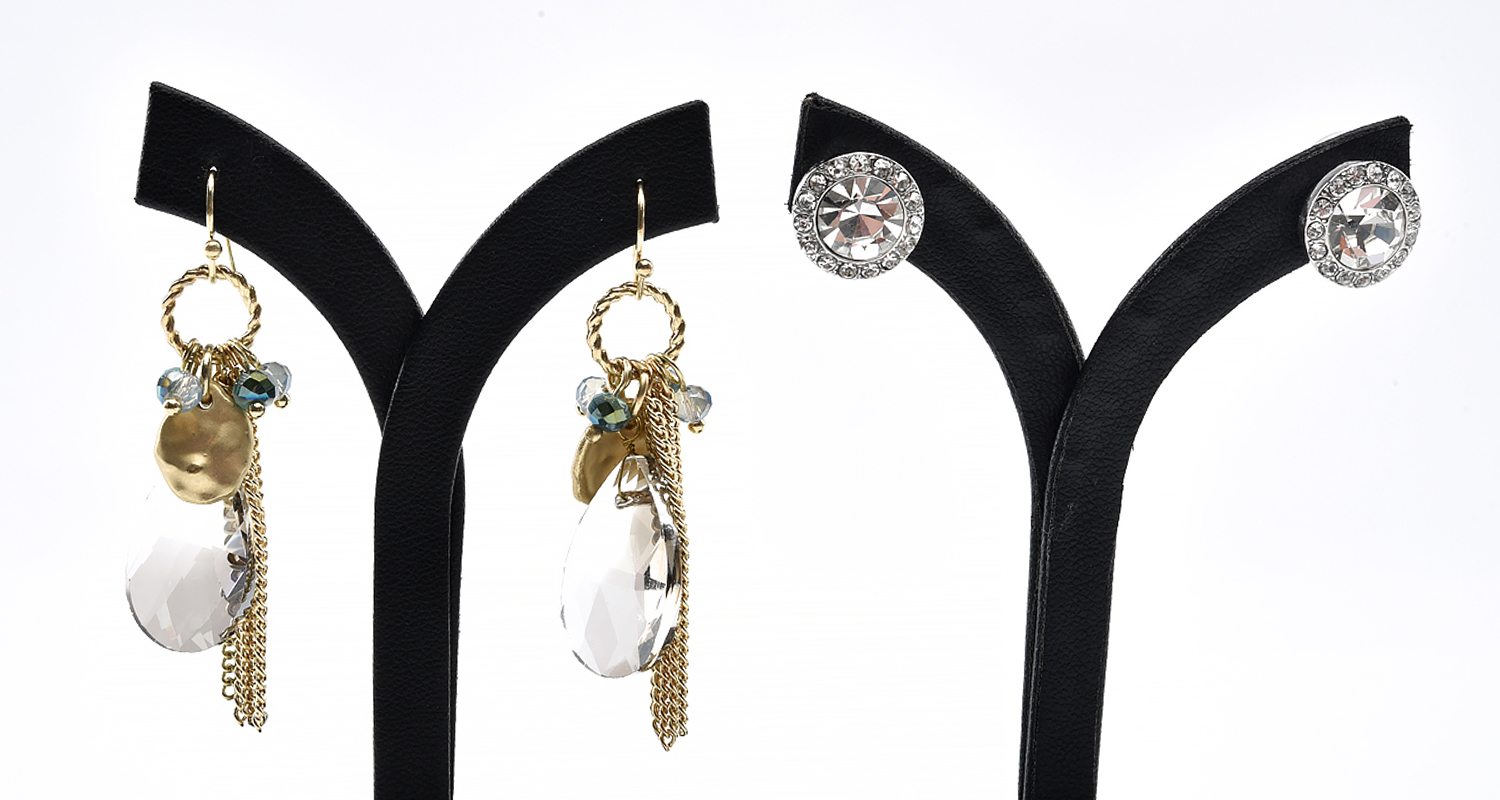 TWO PAIRS OF COSTUME EARRINGS, INCLUDING A DROP TASSLE AND A COLOURLESS PASTE STUD