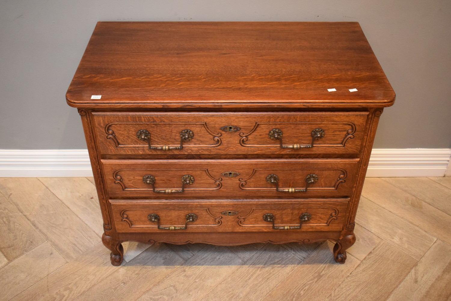 A FRENCH STYLE THREE DRAWER CHEST OF DRAWERS (72H X 90W X 49.5D CM)