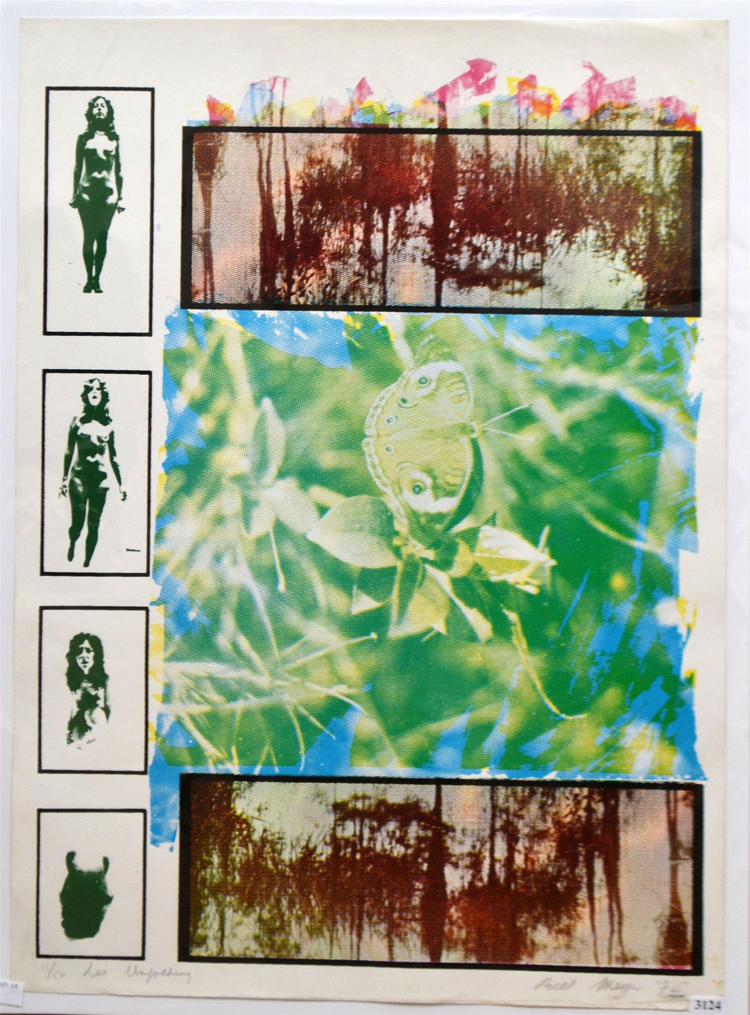 BILL MEYER, LEE UNFOLDING 1974, SCREENPRINT 11/50, 70 X 51CM (SHEET SIZE), CONDITION: VERY GOOD, UNFRAMED BUT BACKED AND WRAPPED IN PLASTIC FOR PROTECTION