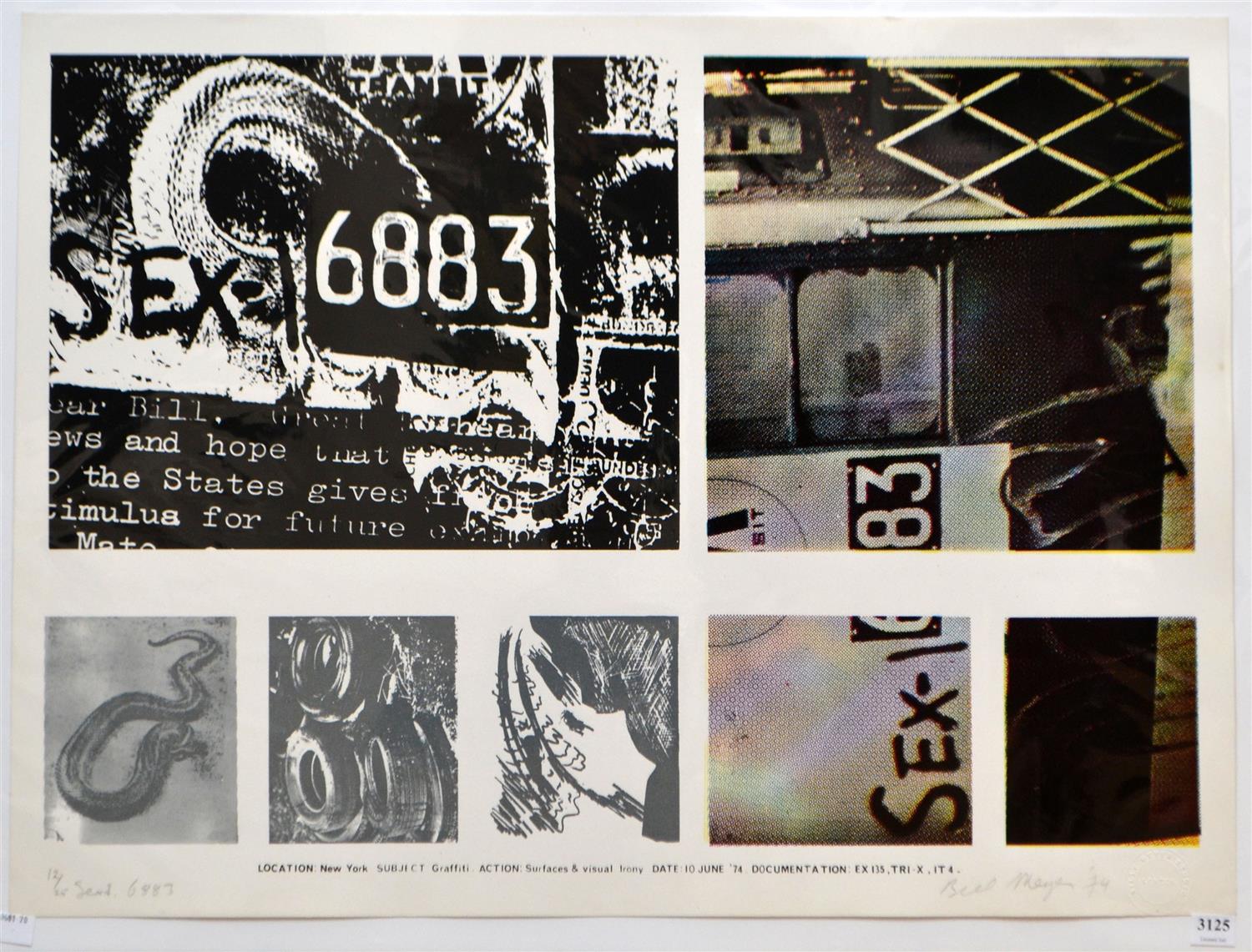 BILL MEYER, SEXT 6883 1974, SCREENPRINT 12/25, 51 X 70CM (SHEET SIZE), CONDITION: VERY GOOD, UNFRAMED BUT BACKED AND WRAPPED IN PLASTIC FOR PROTECTION
