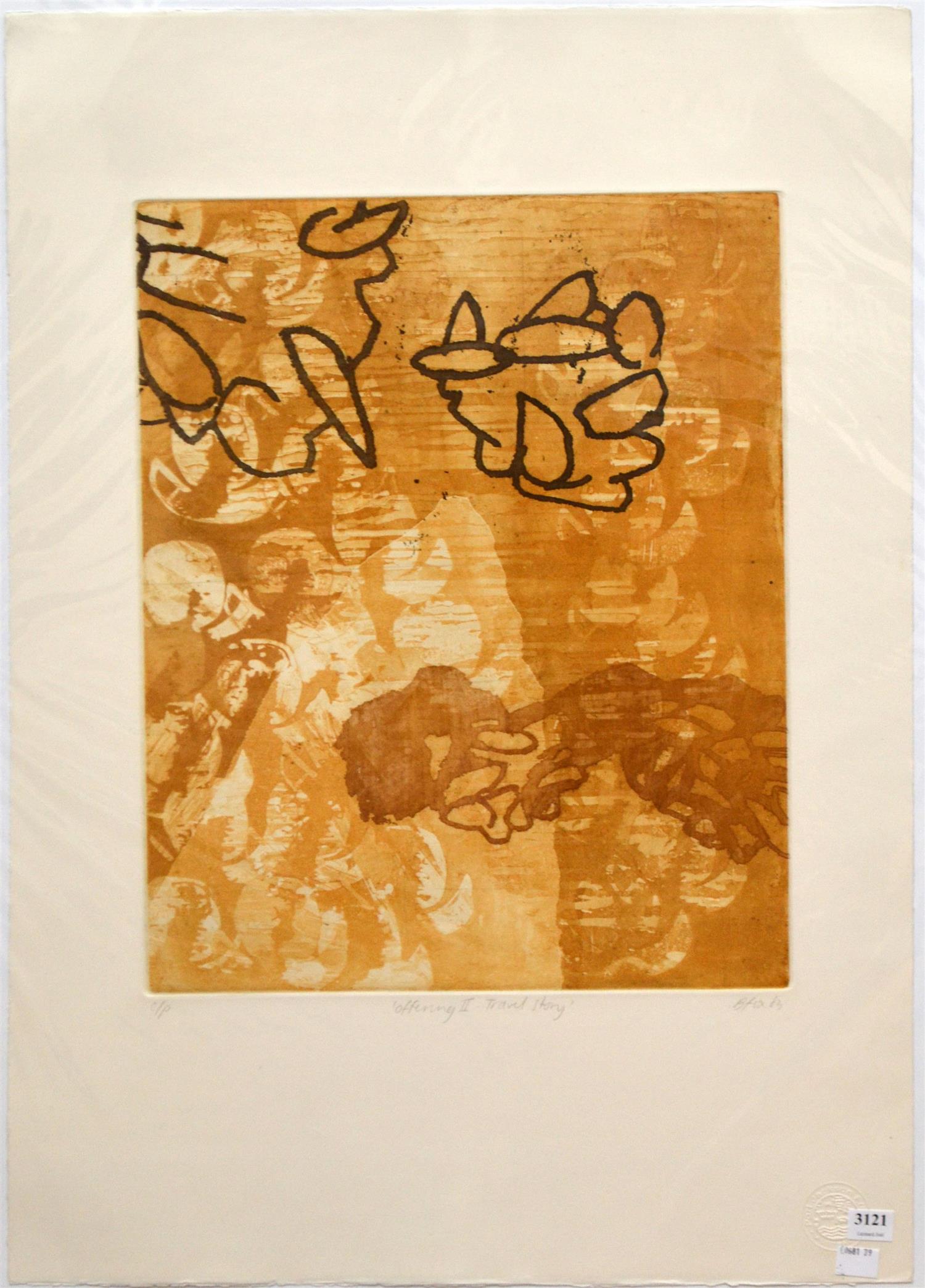 BELINDA FOX, OFFERING II - TRAVEL STORY 2003, ETCHING C/P, 71 X 50CM (SHEET SIZE), CONDITION: VERY GOOD, UNFRAMED BUT BACKED AND WRAPPED IN PLASTIC FOR PROTECTION