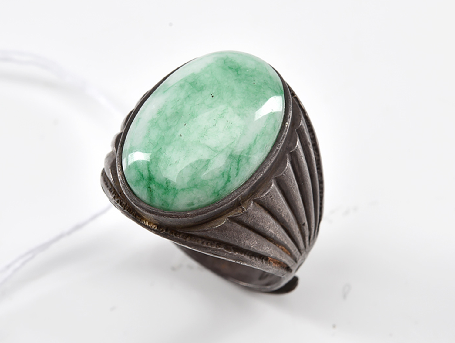A JADE  RING IN SILVER, SIZE S