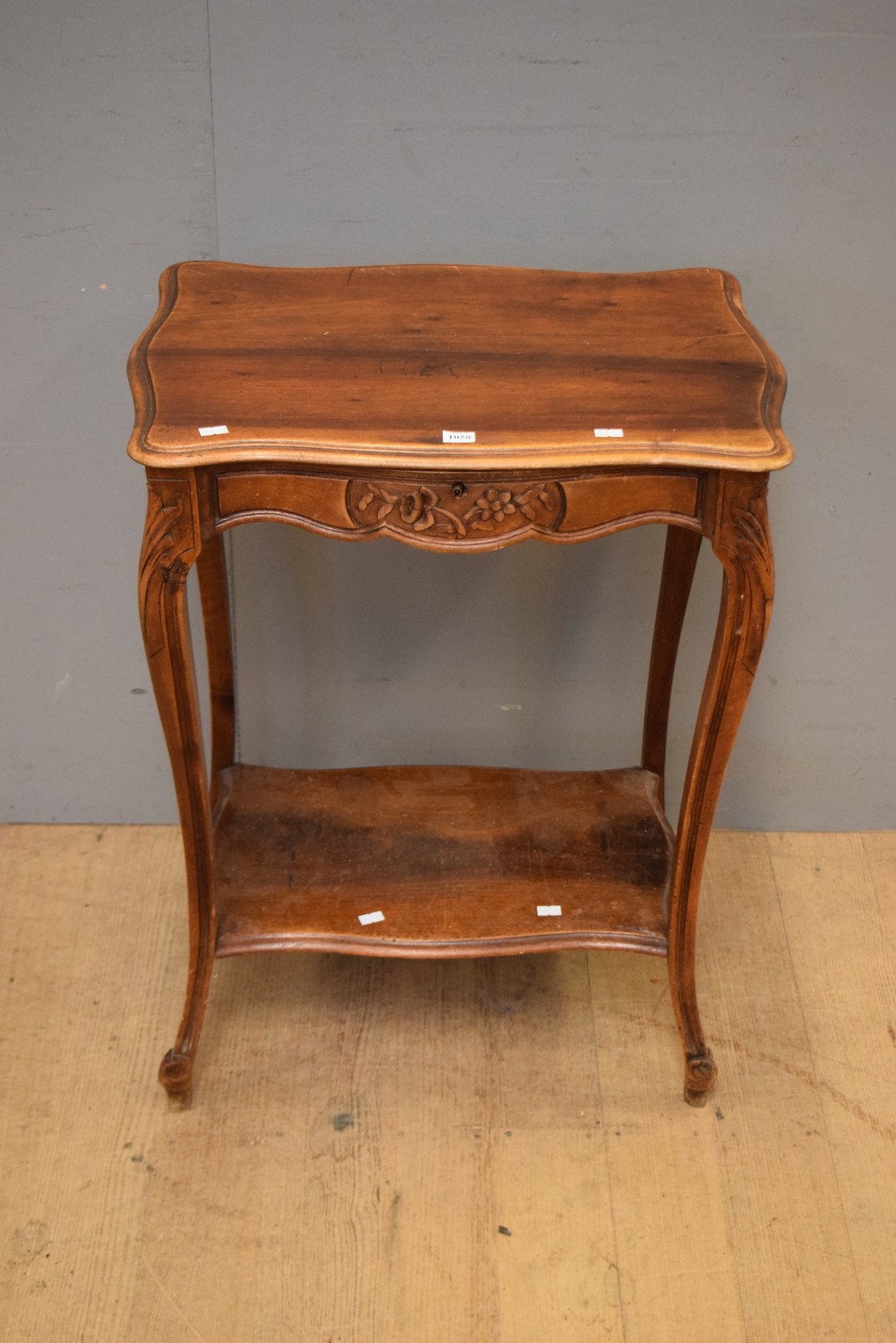 A HIGHLY DECORATIVE WALNUT WORK TABLE (72H X 56W X 37D CM)