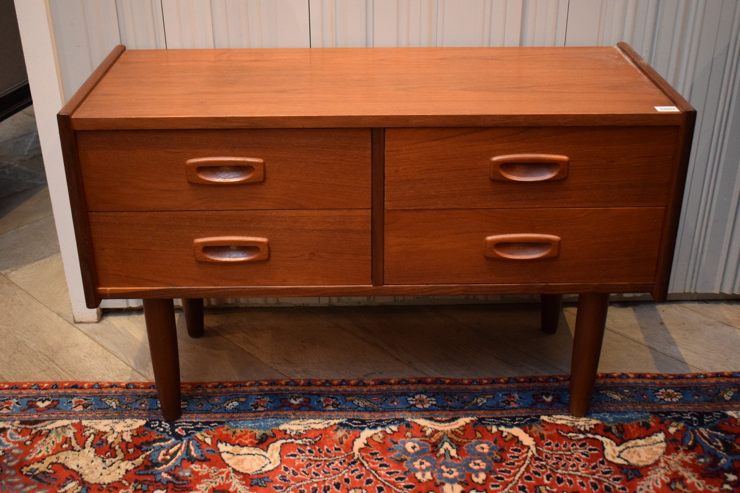 A SMALL DANISH FOUR DRAWER CHEST (47H X 74W X 31D CM)