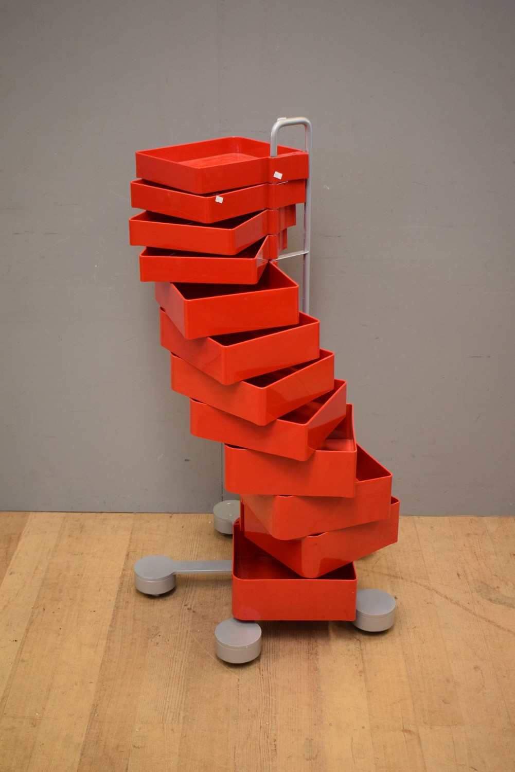 A JOE COLOMBO RED 'SPINNY' STORAGE TOWER (A/F) (126H X 80W CM)