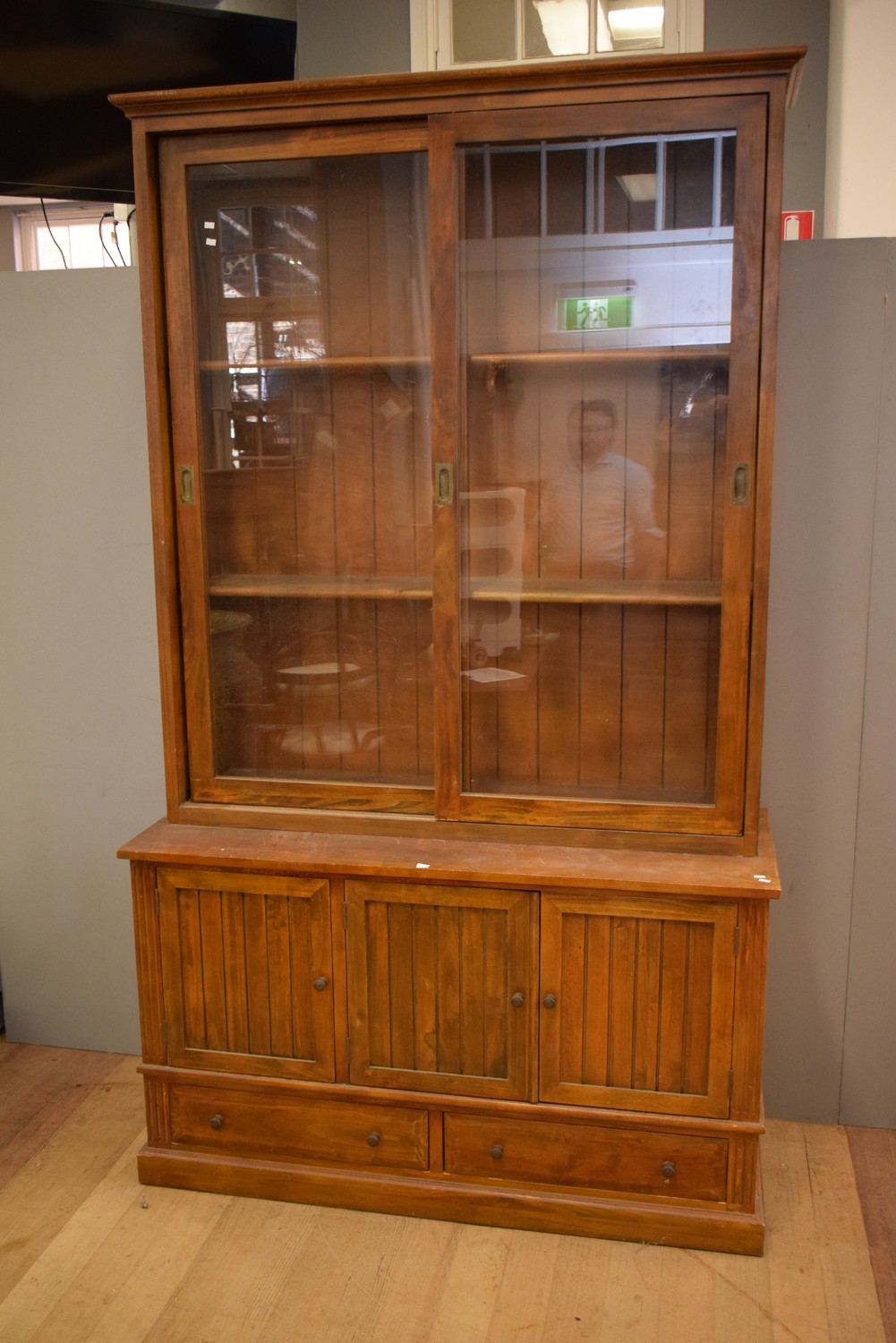A SUBSTANTIAL DOUBLE BODIED GLASS FRONT BOOKCASE (240H X 140W X 55D CM)(PLEASE NOTE THIS ITEM MUST BE REMOVED BY CLIENTS OR CARRIERS AT THE CUSTOMERS EXPENSE)