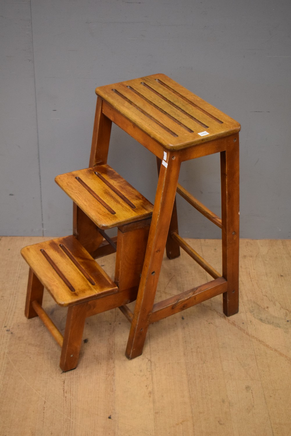 A TIMBER LIBRARY STOOL (71H X 41W X 63D CM)