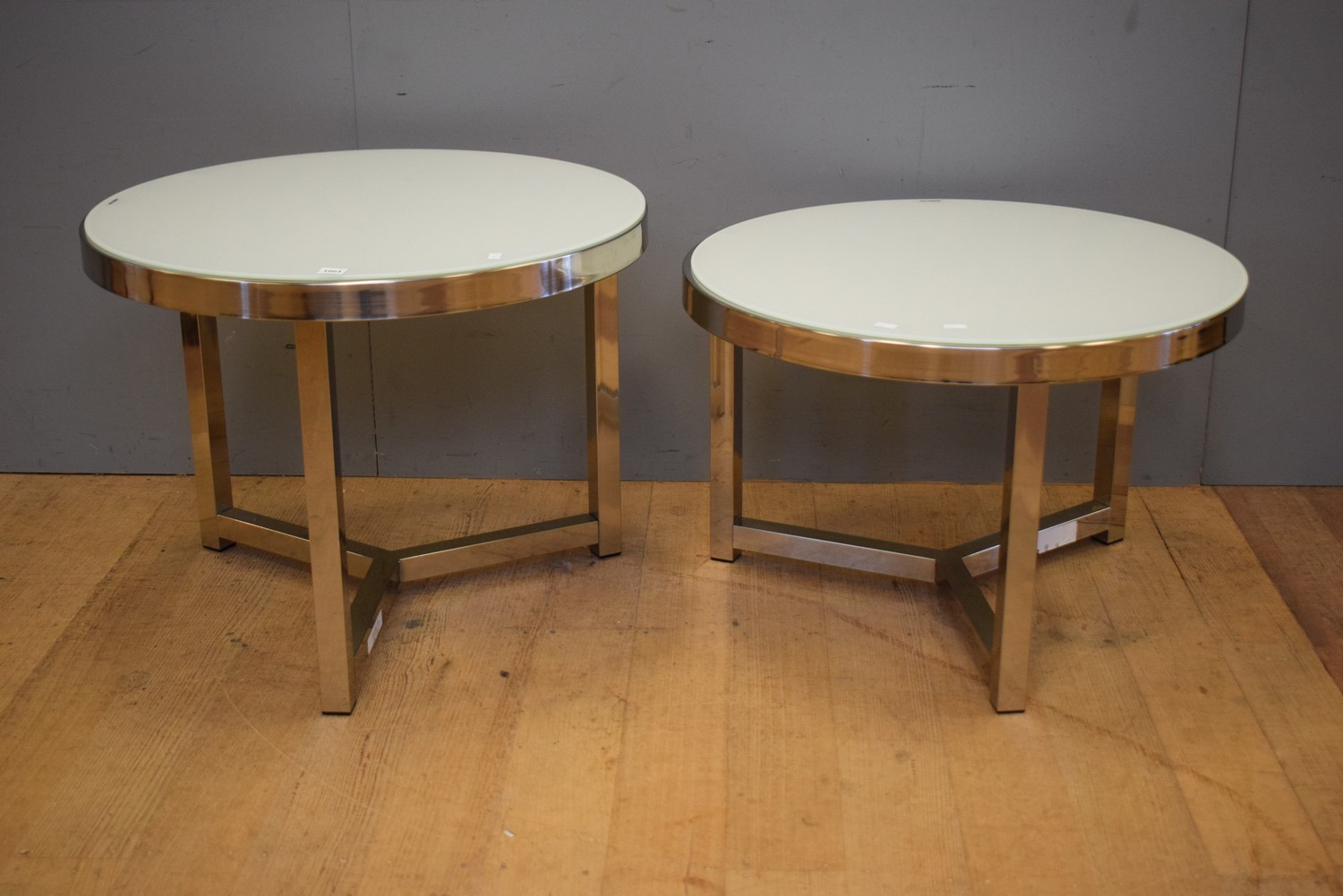 TWO ART DECO STYLE CHROME AND GLASS SIDE TABLES (THE LARGER 46H X 61D CM)