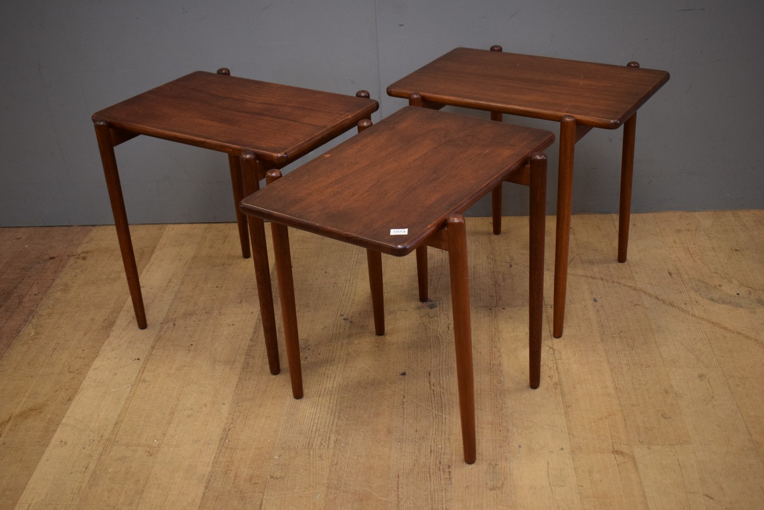 A NEST OF THREE MID-CENTURY SIDE TABLES (48H X 51W X 31D CM)